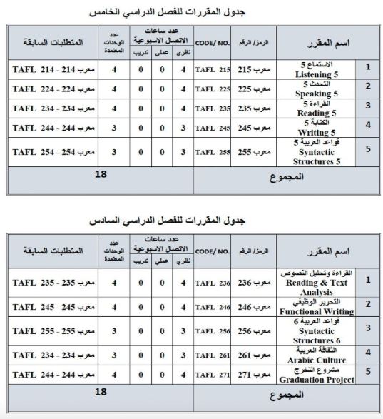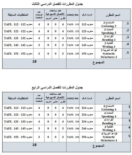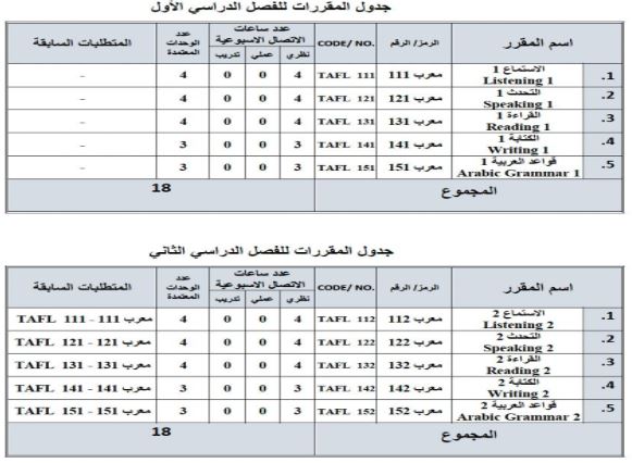 المقررات والجدول الدراسي لبرنامج الدبلوم