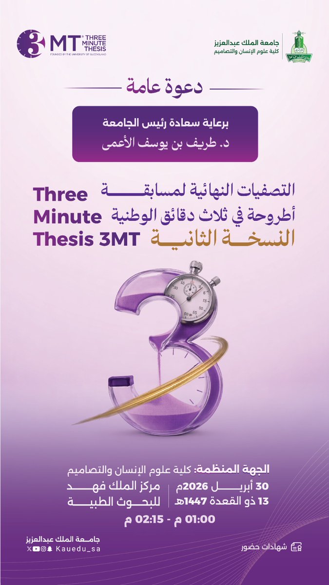 تدعوكم كلية علوم الإنسان والتصاميم بجامعة الملك عبدالعزيز لحضور