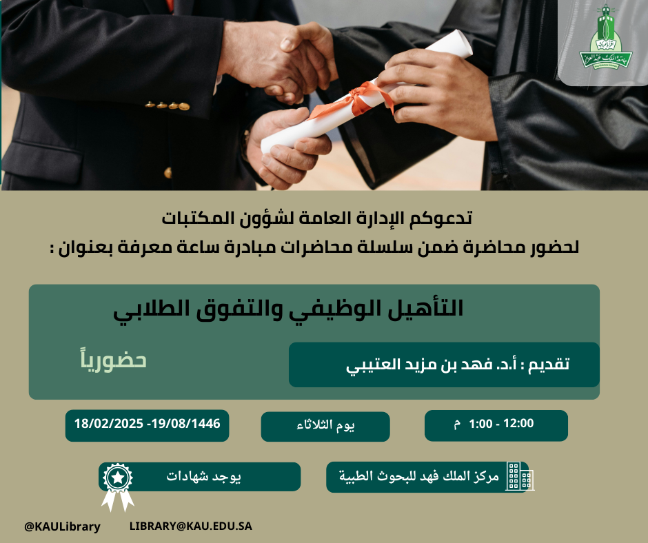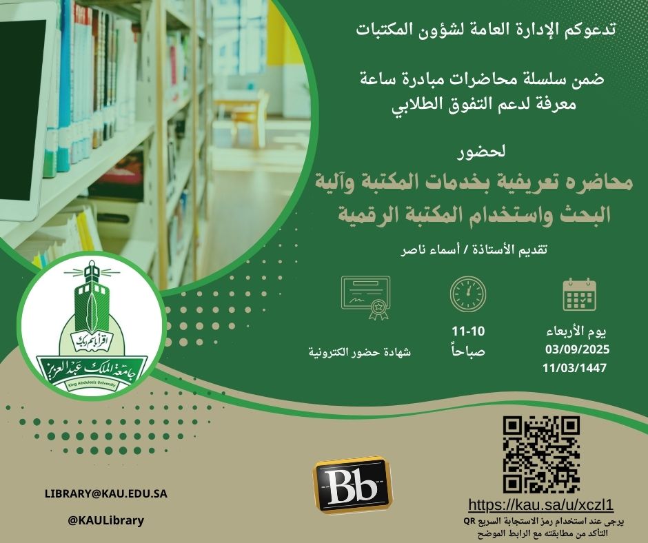 Enhancing the library's role in supporting student excellence by offering a number of meetings that support the educational and research process through various lectures that discuss scientific research, scientific writing, intellectual property, scientific research ethics, research mechanisms, the digital library, databases, and many other lectures that enhance the library's role in supporting the process. Educational and research.