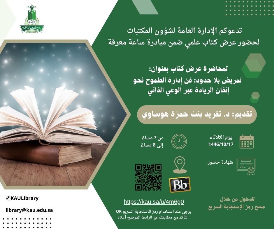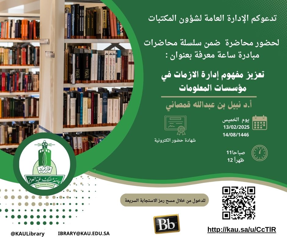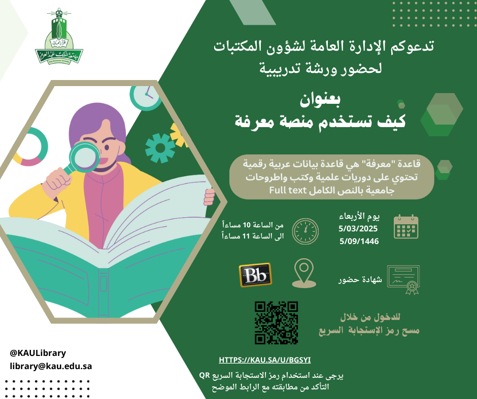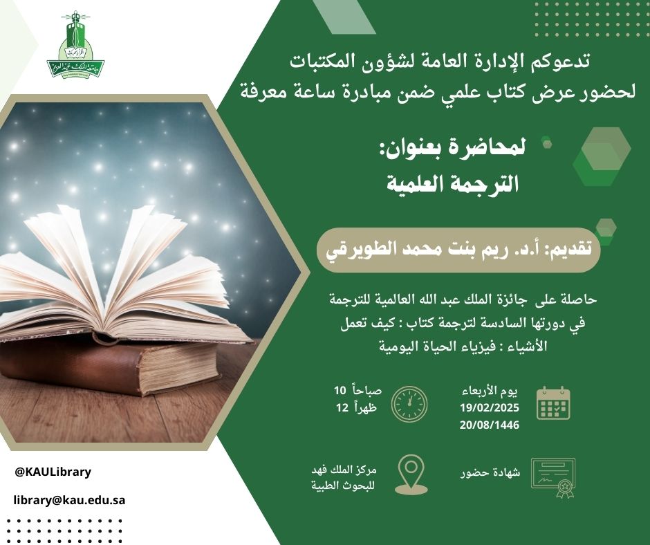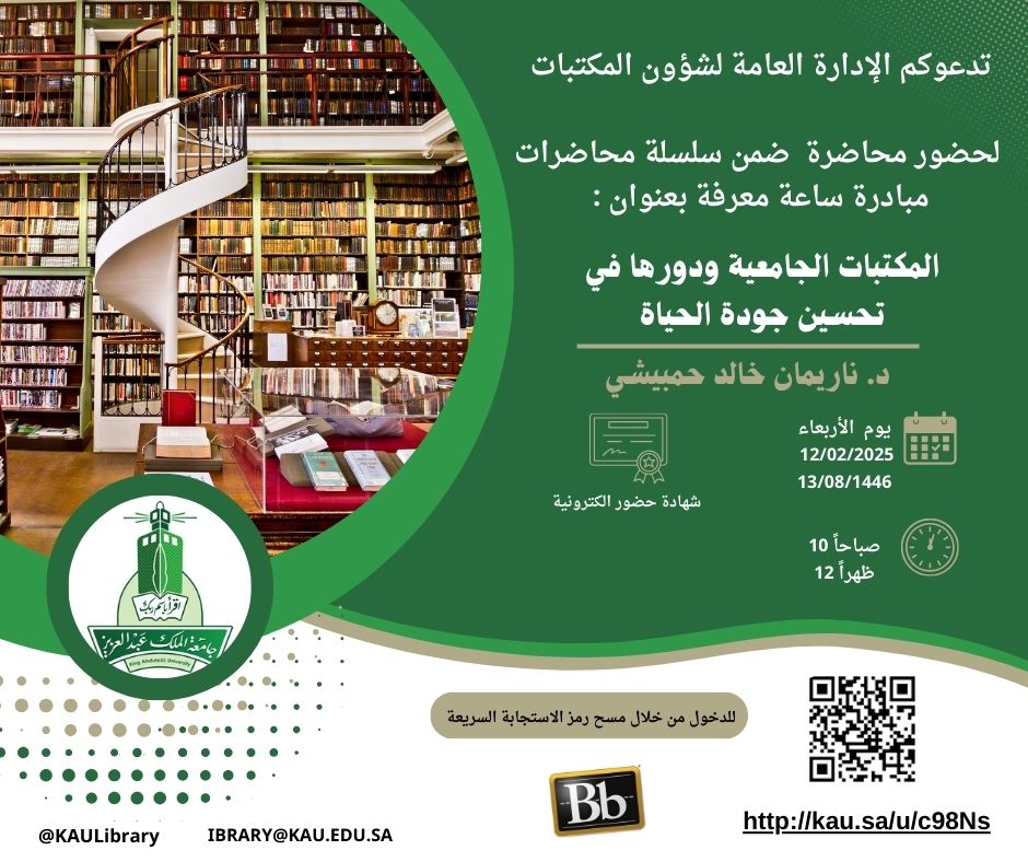 Aims to provide diverse knowledge meetings that enhance the role of the library and the knowledge aspect of quality of life by discussing and presenting a number of topics from experts in the field to gain knowledge and enhance quality of life.