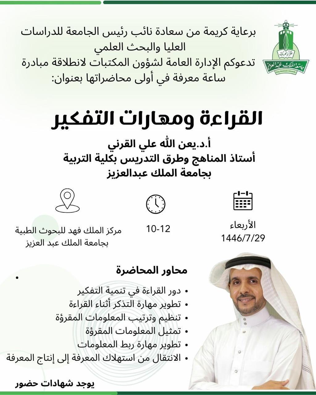 It is a cultural awareness program that aims to support the educational and research process and enhance the importance of books and the integration of science and knowledge in the lives of library patrons and beneficiaries by providing meetings with experts in all scientific and professional fields.